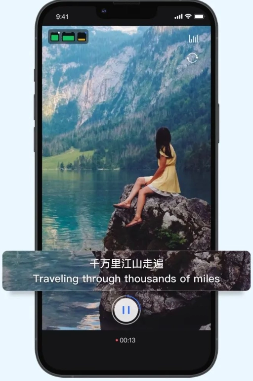 实时拍摄字幕功能,支持中、英、日、韩四种语言,选择后即可使用。