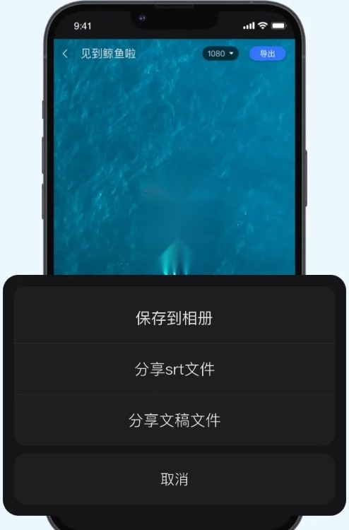 可以一键把带字幕的视频导出到本地,方便快速分享;同时支持导出SRT字幕文件和视频对应的Word文稿。