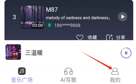 打开酷你AI音乐,点击右下角的“我的”选项卡。