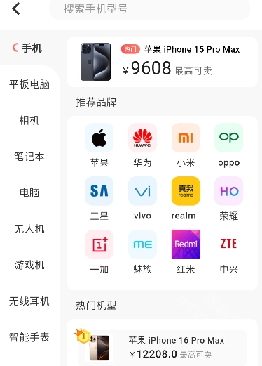 回收品类丰富,涵盖手机、笔记本电脑、平板电脑、相机等各类数码产品。