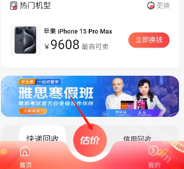打开速回收后,点击顶部【估价】