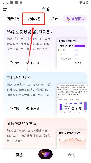 你可以在「心响」App 里找到需要的目标文本内容,这类内容一般会显示在聊天界面或者结果卡片当中。