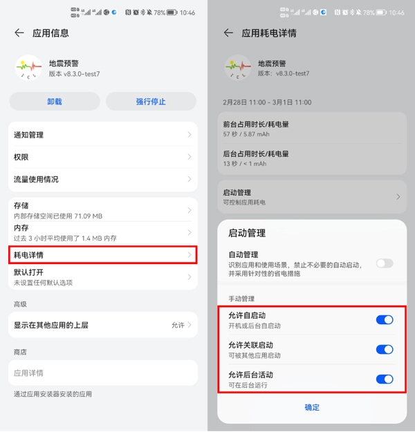 地震预警没有开启后台运行权限,无法正常工作