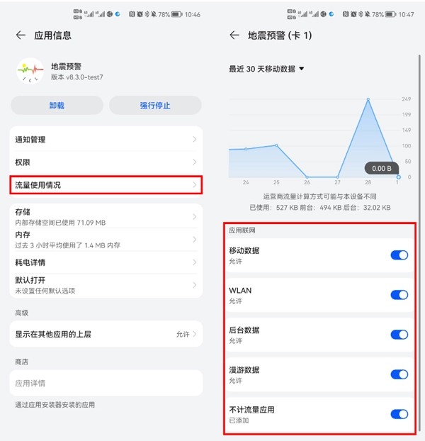 用户的手机网络若未设置为不计流量使用,可能会导致地震预警无法正常运行。