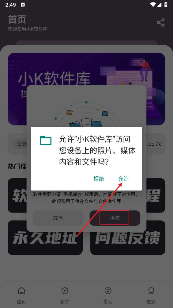 先在本站安装软件,打开软件后找到“授权”选项并点击,授予相应权限以允许访问。