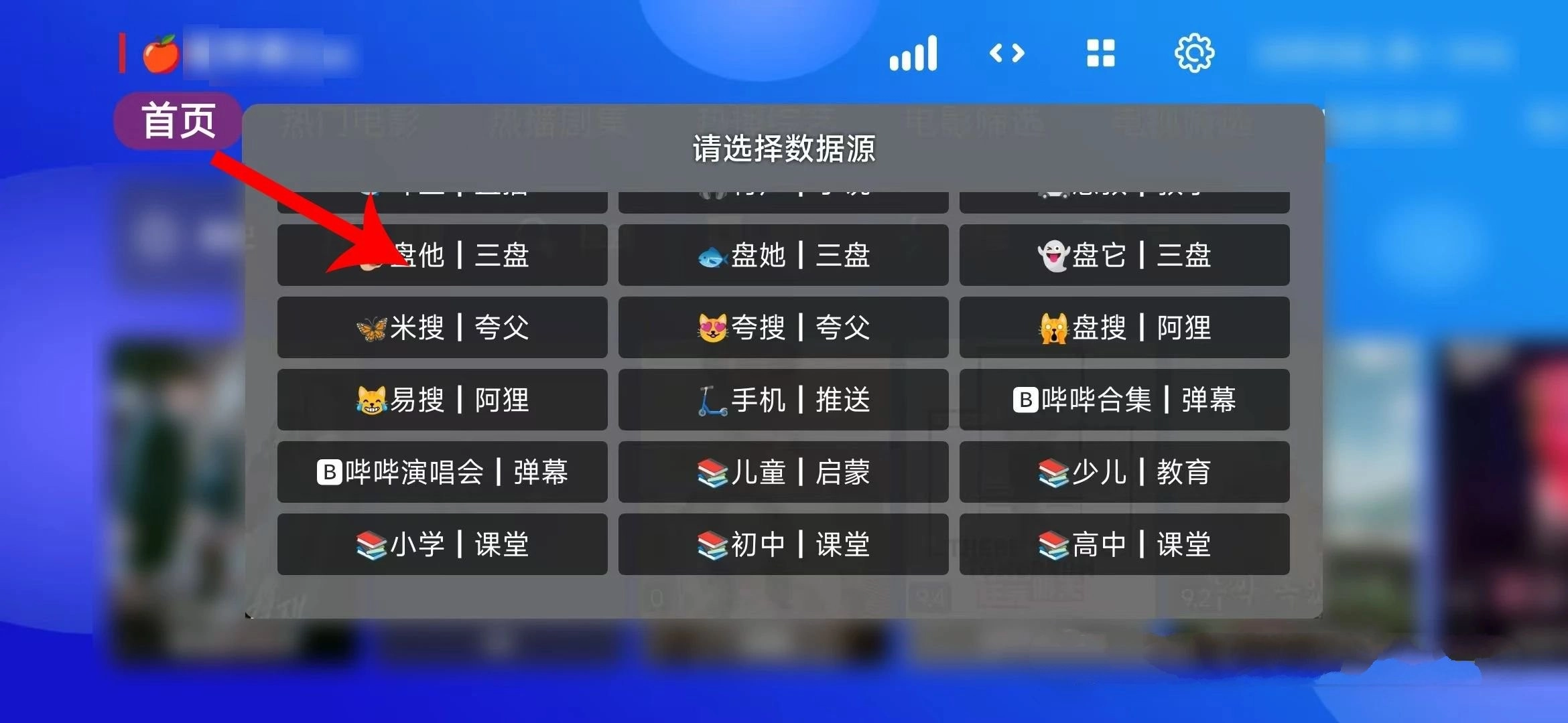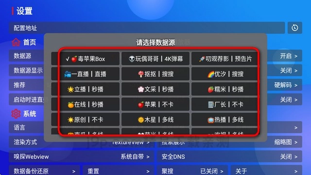 进入设置页面点毒苹果即可弹出多种源。