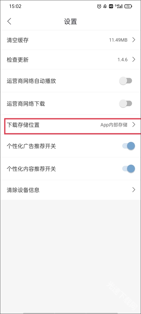 软件默认的存储位置为存储空间,若希望将优质视频资源保存至手机内存,可切换至第一个选项:手机存储。