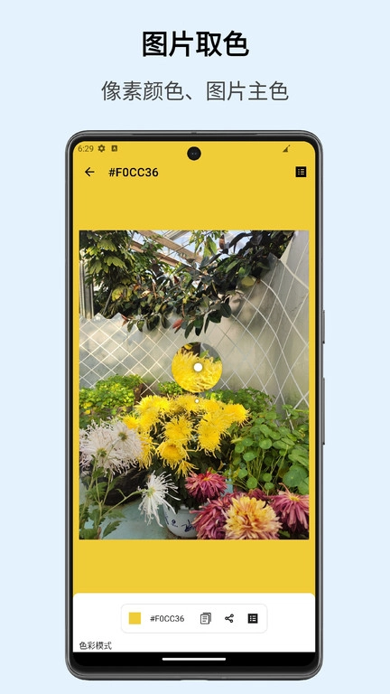 相机实时取色功能:开启摄像模式后,无需拍照即可即时识别画面中的颜色。