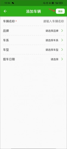 4、输入车辆的具体信息,像品牌、车系、车型,最后点击添加即可。