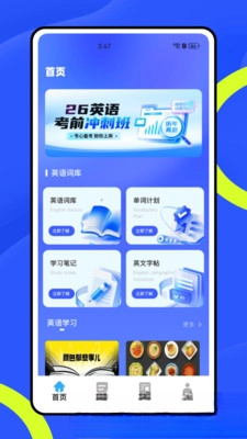 自适应词库功能:能够依据用户的实际水平,动态匹配并推荐四六级、雅思、职场等不同场景的词库内容,同时融合图像记忆、词根词缀解析等多元训练方式,从多维度助力用户高效记忆单词。