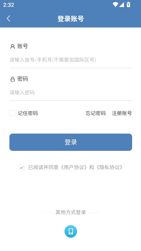 在登录账号的菜单界面,输入账号与密码后,点击“登录”按钮即可进入程序
