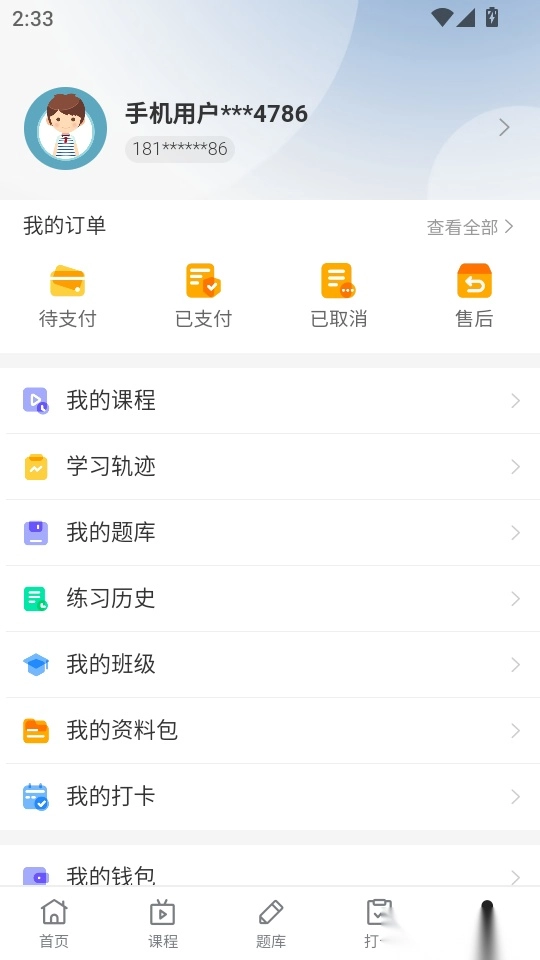 随后进入个人中心菜单界面,找到“学习轨迹”功能按钮并点击进入