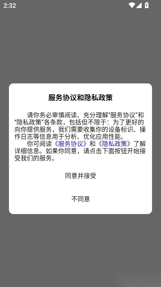 首先打开软件,阅读协议与隐私政策后,点击“同意并接受”按钮,即可进入软件。