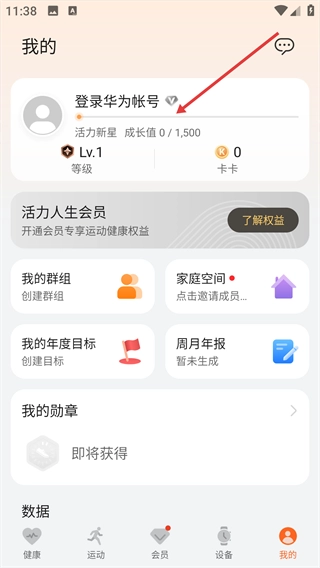 进入个人中心后,点击【登录华为帐号】选项。