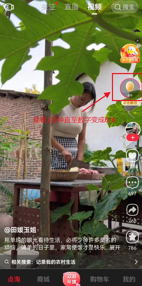 完成上述操作后,你能获得1至7元的奖励。到了第二天,打开点淘并观看直播满1分钟(就像图片里展示的那样),就能确保拿到7元!