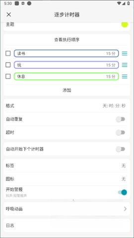 间隔计时器是一种能把多个计时器整合到一起的工具,它在启动和结束时都会发出提示音,而且会自动切换到下一个计时阶段。