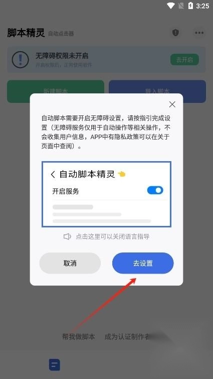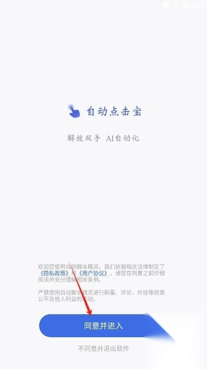进入后阅读并同意自动脚本精灵的用户协议