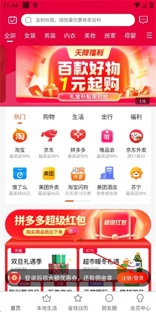 无需充值、无需开通会员,所有用户都能免费领取优惠券、参与返利活动,操作流程简单明了,不管是学生群体还是上班族,都可以轻松上手享受各类优惠福利。