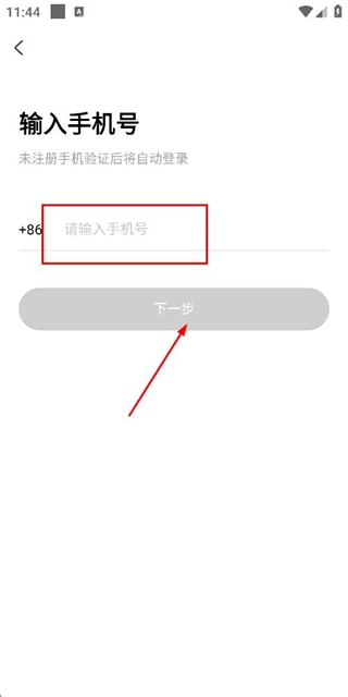 在手机登录界面输入手机号,勾选相关协议后,点击“下一步”按钮以获取验证码。