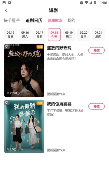 播放历史记录:快手短剧会自动保存用户的播放历史,用户可随时查看自己看过的短剧,便于回顾内容或继续观看尚未看完的剧集。