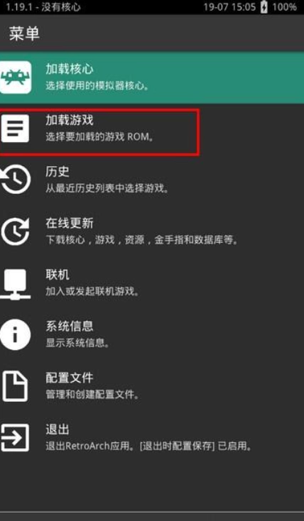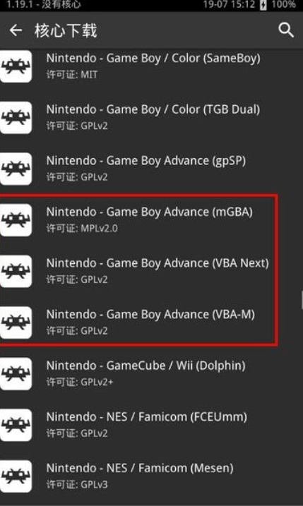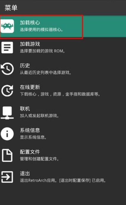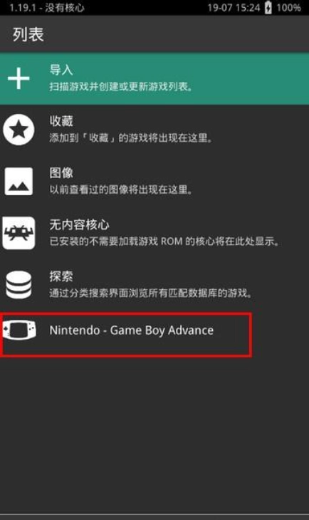 完成后RetroArch会自动解压核心,我们回到游戏选择核心的页面,选择GBA核心即可。