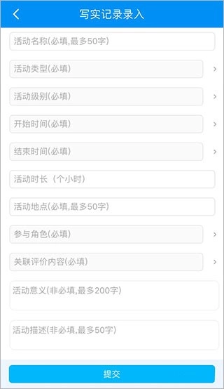 学生点击“写实记录”选项后,能够录入对应的相关信息,完成录入后单击“提交”按钮就可以了。