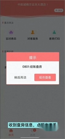 若客人尚在住宿期间,收到查房通知后,请点击“现在查看”。