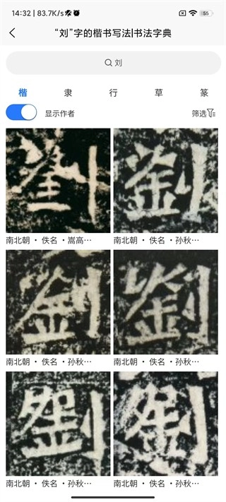 还可以按照朝代和字体进行筛选。