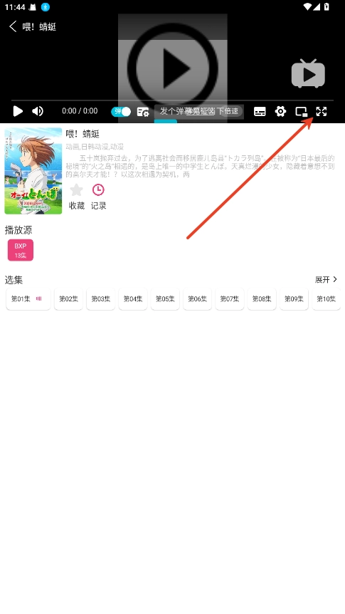 在观影界面,点击右下角的扩大按钮即可。