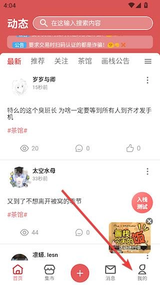 点击进入画栈,点击首页右上角【三】,如图