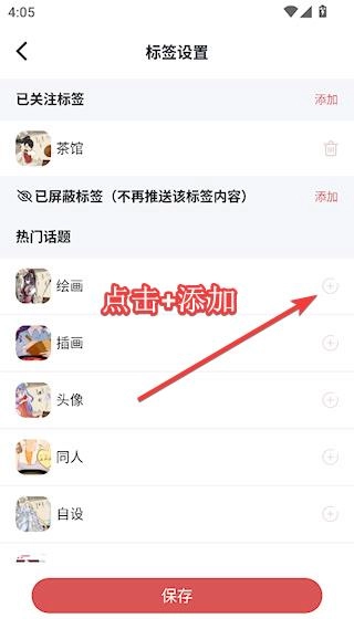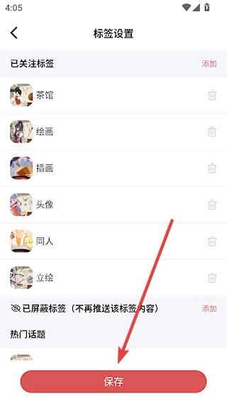 添加自己喜欢的标签后,点击【保存】