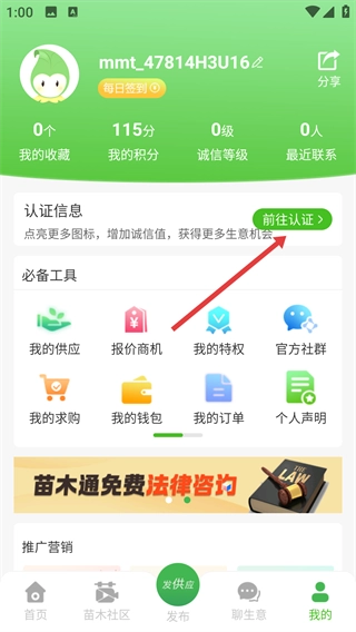 我们需要打开苗木通,进入首页后点击底部的【我的】选项,进入主页。