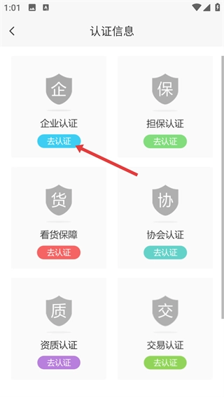 在认证信息页面,找到【企业认证】板块,点击其下方的【去认证】选项,就能进入对应的认证界面啦。