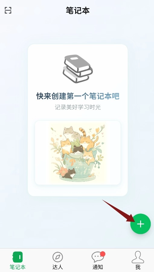 在笔记本界面中,点击右下角的加号按钮,就能创建新的笔记内容了。