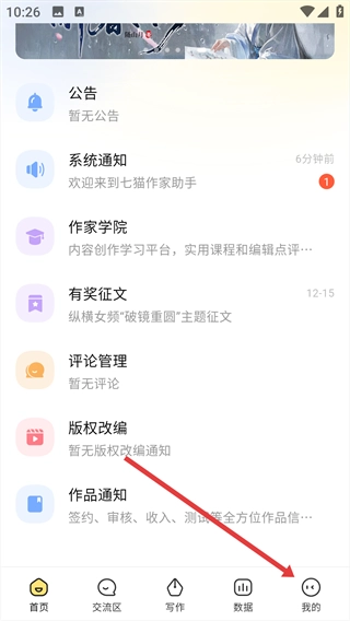 首页整合了公告、审核提醒、作品通知等关键信息,创作者能随时知晓平台动态与作品进度,确保消息传达及时。