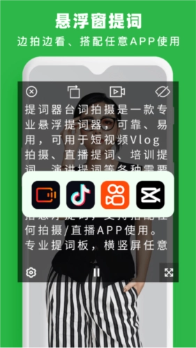 悬浮提词器:配备智能AI提词功能,可通过蓝牙操控悬浮窗内的台词内容,让双手得到完全解放。