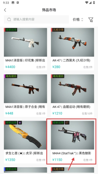 在饰品市场的列表中,找到并点击M4A4-StatTrak™|黑色魅影(崭新出厂)的饰品条目,即可进入该饰品的详情页面。