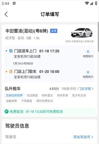 随后提交订单即租车成功啦!