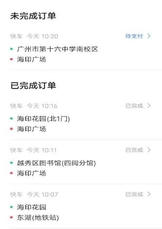 个人的出行订单会自动保存,你可以清楚查看每次出行的目的地名称。