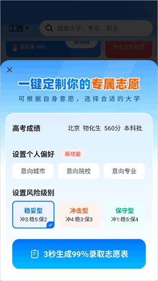 可以选择一键定制生成录取志愿表