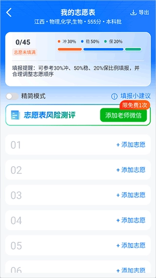 一键加入志愿表科学管理