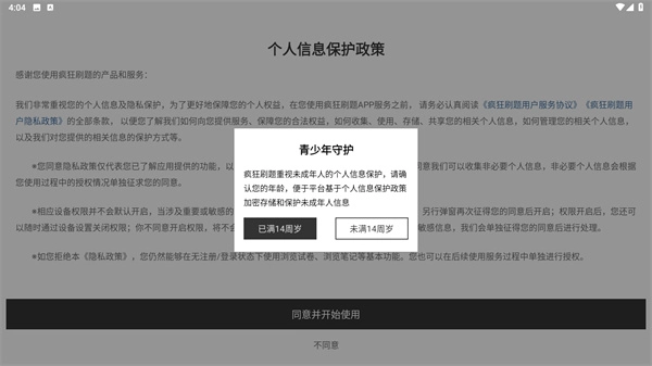 阅读完个人信息保护政策后,点击“同意并开始使用”按钮即可进入软件。
