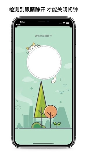 睁眼闹钟借助人脸检测技术,只有在识别到使用者双眼都睁开时才启动计时,待计时达到设定的时长后,闹钟便会自动关闭。