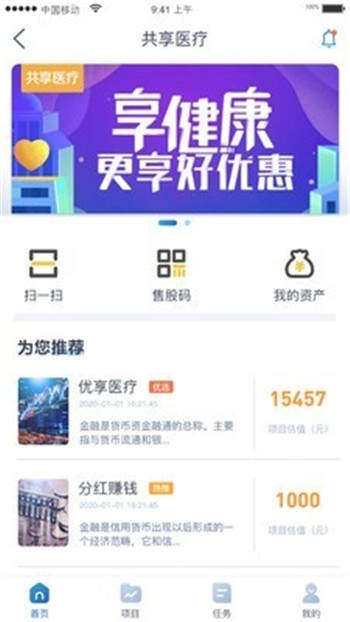 共享医疗是一款专业的医疗服务软件,能为用户提供丰富的医疗卫生知识,支持随时在线医疗咨询,还可在线查看各类医疗项目。此外,它还能助力已通过的医疗项目实现收益,感兴趣的朋友快来体验吧!