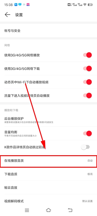 我们这里就可以看见一个“在线播放音质的选项”。
