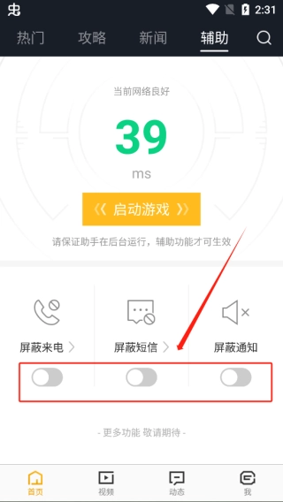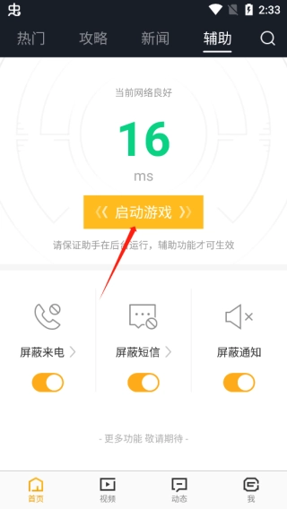 即可将屏蔽来电、短信、通知打开,点击启动游戏即可