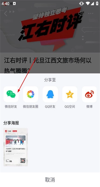 在分享界面里找到微信好友选项并点击,就能把这篇江右时评的文章分享给相应的微信好友。