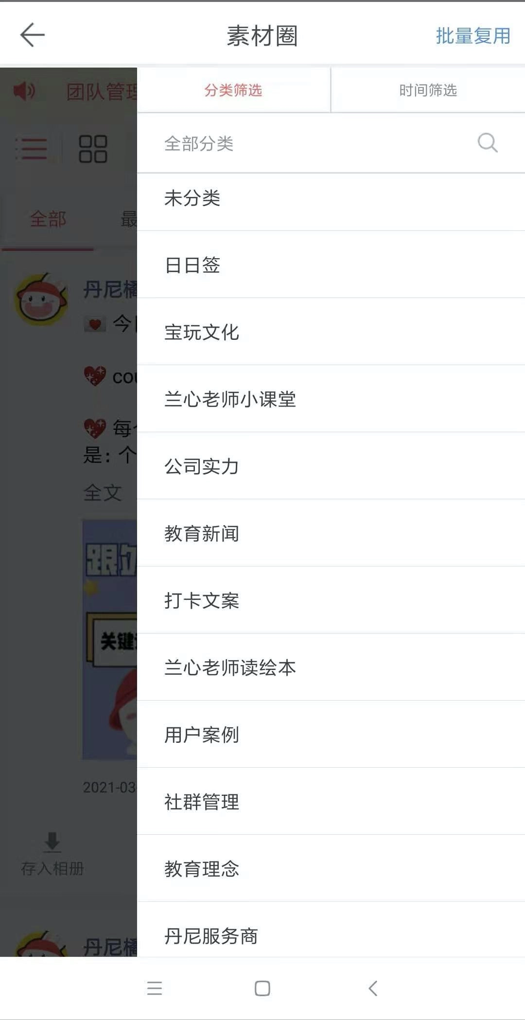 完成后,你就能在团队【素材圈】里看到日日签、公司实力、用户案例等各类丰富素材啦!