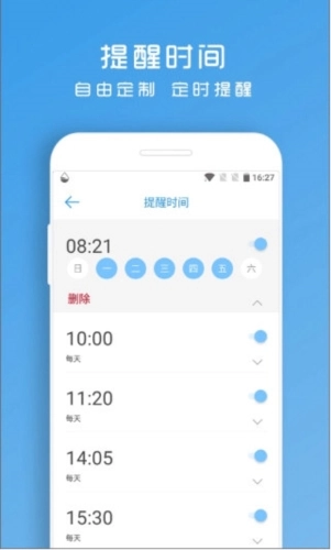 喝水提醒助手会依据您的性别与体重,估算出您每日所需的饮水量,并按照时间为您合理分配这些水量。