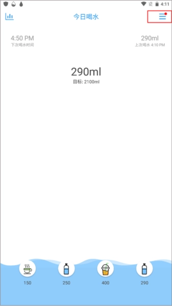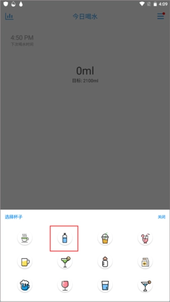首先点击右侧的“…”图标,接着选择你喝水所用的杯子以及对应的喝水容量,之后关闭下拉菜单。